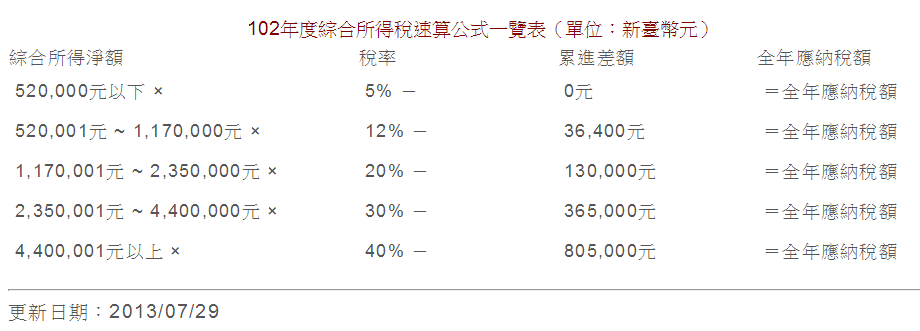 最新!綜合所得稅(102年度,103年申報)稅率級距表、免稅額、標準扣除額